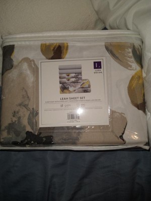 King 6pc Leah Patterned Sheet Set Yellow/Gray - Lush Décor: Microfiber, Botanical Floral, 225 Thread Count