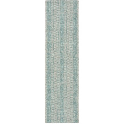 Courtyard CY8680 UV & Stain Resistant Non-Shedding Power Loomed Indoor/Outdoor Runner Rug - Aqua/Grey - 2'3"x10' - Safavieh
