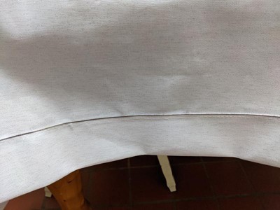 [This review was collected as part of a promotion.] This table cloth is well made. It has a nice weight to it and is the perfect color. Its embroidery is a nice classy touch. It fits my table just right with a bit of hangover. Not so much that you get tangled up in it when pushing yourself in to enjoy a meal. CmI give this 2 thumbs up!