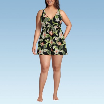 Lands' End believes every body is a beach body! Whether you're going to aqua aerobics running through the sprinklers with your little ones or taking a beach vacation all you need is the right swimwear. And we think this women's plus size SlenderSuit swimsuit is a wonderful choice. Made from durable LYCRA Xtra Life spandex this slimming bathing suit will hold onto its shape through many washes and wears. The amazing SlenderSuit fabric keeps your tummy in check while smoothing away lumps and bumps. And it even provides UPF 50 sun protection - the highest you can get - to prevent burns. We've also added a gorgeous wrap design a flatttering v-neck cut and a wire-free soft cup bra that provides a boost where you need it most. Don't forget to pack this ladies swimsuit when you're heading off on a trip. The glamorous retro-inspired style is right at home in a luxurious resort - or wherever you may find yourself. Just add strappy sandals dark sunglasses and a sarong to complete your look.