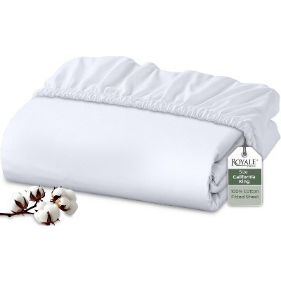 100% Organic Cotton Percale Cooling Fitted Sheet by Bare Home - California King, White