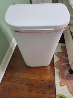 The thing i love about this is that it is white and stays clean. I only wish it was a little taller just because my counters are pretty high. I liked how it was to open and it held the standard string garbage bags. Lid was easy to lock in. I received this product as part of a My-Take research study.