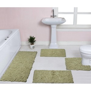 Product Name: Set of 4 Bell Flower Collection Green Cotton Floral Pattern Tufted Bath Rug Set - Home Weavers
