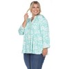 Product Name: Womens Plus Pleated Long Sleeve Floral Print Blouse Green 3X - White Mark