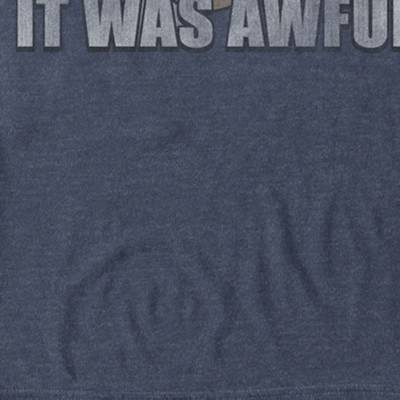 • A: The t-shirt features a slightly distressed graphic of Grumpy with the phrase: 'I Had Fun Once It Was Awful'.