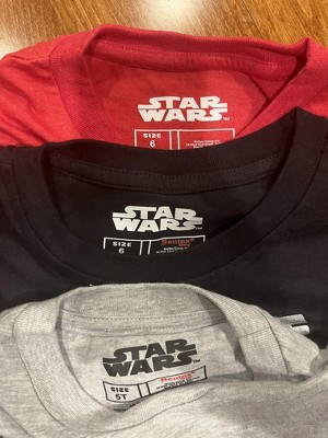 Super cute Star Wars shirts! My six year old is obsessed with Star Wars and the three pack was perfect for him. They fit true to size.