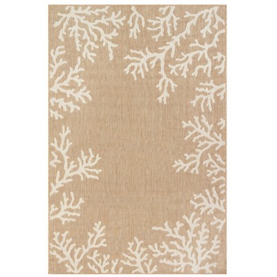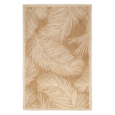 This decorative flatweave area rug features a warm tan background accented by modern white palm leaves. A sophisticated take on tropical style, this design perfect for welcoming guests in your entryway, living room or as a stylish detail on your outdoor patio. Made in Turkey from 87% Polypropylene/13% Polyester, this performance collection is Power Loomed to create subtle, naturally beautiful multi-toned detailed designs with a high-quality finish. The material is flatwoven, UV stabilized, fade resistant, durable and ideal for those high traffic areas such as your patio, deck, kitchen and living room making this the perfect indoor or outdoor rug. A fresh take on traditional area rugs, patterns range from tropical, coastal, contemporary and classic to seamlessly tie together the design of your home. Limiting exposure to rain, moisture and direct sun will prolong rug life.