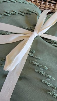 I was so excited when my duvet cover and pillow covers arrived! They were packed very nicely and were tied with a nice bow. The color of green is a nice color that can be accented with a beige blanket. The manufacturer of this set is one I have bought from before in the past and is of very nice quality!