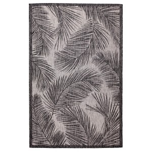 This nature inspired flatweave area rug features a light grey background accented by modern black palm leaves with a subtle black border. A sophisticated take on tropical style, this design is perfect for welcoming guests in your entryway, living room or as a stylish detail on your outdoor patio. Made in Turkey from 87% Polypropylene/13% Polyester, this performance collection is Power Loomed to create subtle, naturally beautiful multi-toned detailed designs with a high-quality finish. The material is flatwoven, UV stabilized, fade resistant, durable and ideal for those high traffic areas such as your patio, deck, kitchen, bedroom and living room making this the perfect indoor or outdoor rug. A fresh take on traditional area rugs, patterns range from tropical, coastal, contemporary and classic to seamlessly tie together the design of your home. Limiting exposure to rain, moisture and direct sun will prolong rug life.