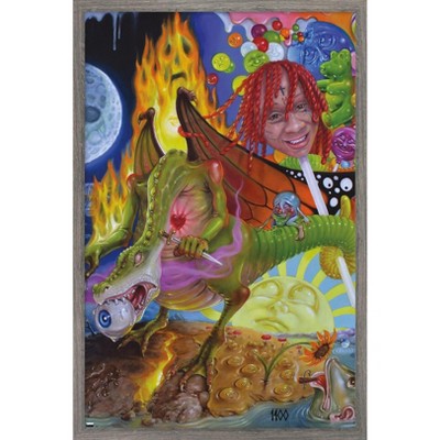 Trends International Juice WRLD - Fighting Demons Album Cover Framed Wall Poster Prints Barnwood Framed Version 22.375" x 34"