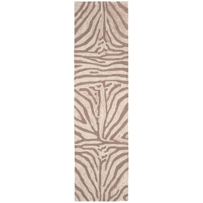 This hand-hooked area rug features a beige background accented with black zebra stripes. This subtle jungle design will effortlessly compliment any indoor or outdoor space. Made in China from a polyester acrylic blend, the Ravella Collection is hand tufted to create vibrant multi-toned detailed designs with tight textural loops and a high quality finish. The material is flatwoven, weather resistant and treated for added fade resistance, making this area rug perfect for indoor or outdoor placement. This soft, durable area rug is ideal for your patio, sunroom or those high traffic areas such as your kitchen, living room, entryway or dining room. Intricately shaded yarns bring to life the nature inspired designs of this collection that will beautifully accent your home. Limiting exposure to rain, moisture and direct sun will prolong rug life.