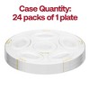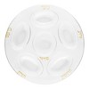 This set of clear with gold round section tray disposable plastic seder plates is perfect for any party, event, or special occasion. These clear plastic seder plates are disposable and recyclable. They are heavy enough to reuse, yet priced so you can discard them. These premium plastic seder plates measure 12 inches in diameter and have six sections.