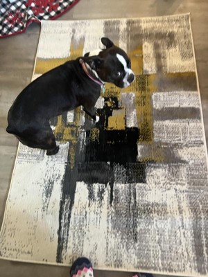 [This review was collected as part of a promotion.] The World Rug Gallery Contemporary Modern Abstract Gold rug is a striking rug. Viewed from my second floor, it looks like an abstract piece of art on my floor. The main drawback of the rug is that it is kind of thin. It is not plush under your feet.