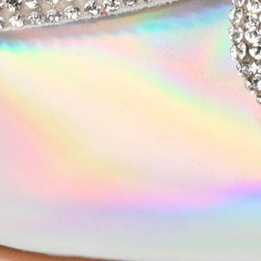 • A: A rhinestone bow paired with a sparkling strap enhances the glamorous look of the pumps.