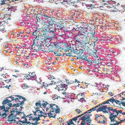 JONATHAN Y Bohemian FLAIR Boho Vintage Medallion Blue/Multi 4 ft. Square Area Rug, Non-Shedding, Easy-Clean, Durable Synthetic Fibers