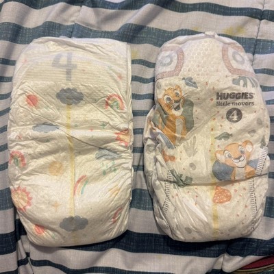 [This review was collected as part of a promotion.] We've been using these diapers for the past week. They are on the bigger end of diaper spectrum with a larger back side, so it should take longer to size out of them. My baby had worn them all night with no leaks, and no blowouts throughout the day. They do seem to be a little on thr wetter side in the mornings, so the long overnight absorbency isn't the best, but it doesn't soak out. For the price, they are a great option for diapers.