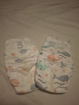 [This review was collected as part of a promotion.] These diapers are so soft! They feel great on my hands, so I know they feel good on my baby too. The designs are cute (whales and rainbows/clouds/suns) and I appreciate thst They have the little strip that changes colors when my son pees. With that being said, he's a year and a half now so we don't really use the strip anymore, but it's nice to have anyway! The adhesives stick well and allow the diaper to have a nice firm fit, while still being moveable while my son runs around with all his toddler energy. So far I have not experienced any leaks but we also haven't had any crazy runny poops or anything.