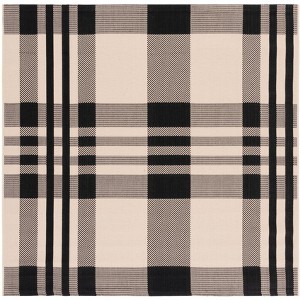 Elevate your indoor or outdoor living space with this elegantly designed 7'-10" X 7'-10" square area rug. The perfect blend of style and durability, this rug features a timeless beige and anthracite plaid pattern that adds a touch of sophistication to any setting.