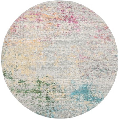 The rug features a subtle and elegant grey and beige color palette, exuding a sense of calm and neutrality that complements any room decor. With a modest pile height of 3/8", this round-shaped rug offers a sleek profile that avoids obstructing doorways and seamlessly integrates into your living space.
