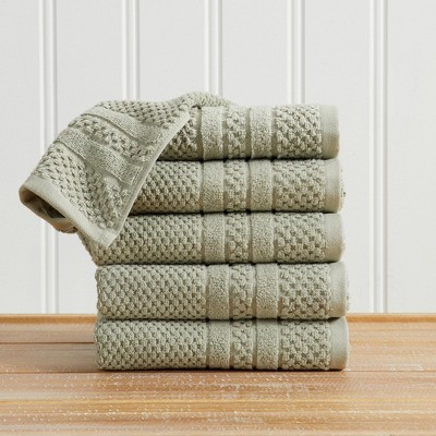 Cotton Quick Dry Loop Textured Bath Towel - Great Bay Home (Eucalyptus, Hand Towel - Set of 6)