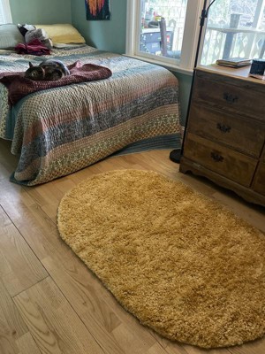 Nice rug. At first it seemed s little flatter than pictured but it fluffed up nicely after a bit and a vacuum! Pretty color! More mustard than yellow which I wanted.