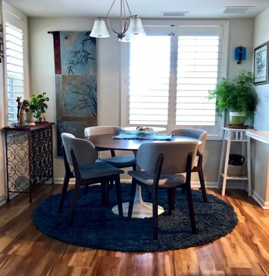 Guests appreciate the Zermatt shag round rug for its beautiful colors, soft texture, and overall quality. Many find it perfect for various spaces, including living rooms, bedrooms, and nurseries, adding a cozy and inviting feel. While some mention it could be thicker, the rug's aesthetic appeal and comfort underfoot are frequently highlighted, making it a popular choice for enhancing home decor.