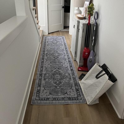 Product Name: Well Woven Areva Machine Washable Grey Vintage Oriental Medallion Flat Pile Runner Rug 2x7 (2'1" x 7'3" Runner)