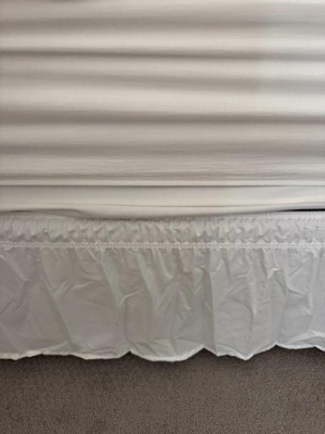 [This review was collected as part of a promotion.] Beautiful bright white bed skirt. I liked that it’s microfiber fabric so it lays nicely. Minus one star because it has elastic on one side so it doesn’t cover the back. I also prefer the old school sheet bed skirts just because they are easier to lay out and use. Had to put some effort into putting this one on and adjusting.