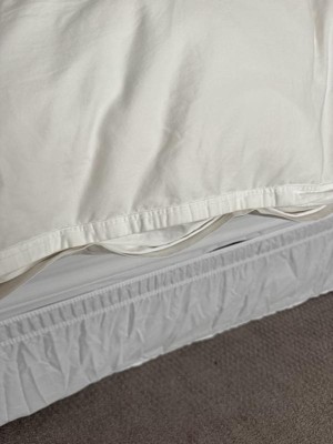 So easy to get the bed skirt on the box spring with the elastic strap. Great idea.