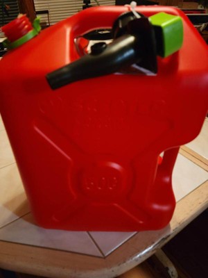 [This review was collected as part of a promotion.] Love this 5 gallon gas container, perfect for both having on hand at home for the power equipment as well as when cutting wood offsite. Five gallons is just perfect and the retro military "jerry can" style brings back a lot of memories, though it is in red and has the new government regulated spigot which some people find a pain to use. No leaks, no odors, and ties down on a rack perfectly, unlike round cans. I highly recommend.