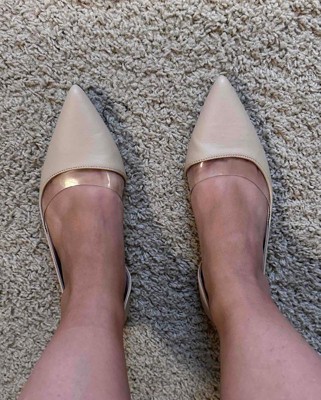 I ordered a size 8 (my normal size) and they ran small. There is a clear part of the shoe that was not noticeable in the picture online that dug into the top of my foot. This made them very uncomfortable. They were easy to walk in and stayed on my foot. It is a dressy flat The color is neutral and will go with everything. It will look nice with a dress or with pants. I wish they were more comfortable because they were very cute. This item Felt too short and the width Felt true to width. I received an incentive to write this review.