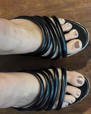 These shoes are gorgeous and I wish I could keep them. The footbed feels comfortable and perfect size but the straps are soooo long. Probably because I have narrow feet. I have to struggle to keep them on, they want to go flying off. But if you have wider feet, go for it. I totally would get them in all colors, if the straps were tighter.