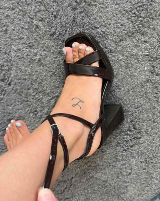 Our Zorana platform sandals from Journee Collection will have you looking the best out there with their luxe vegan leather block heel crisscross detail and open square toe. A buckled strap tops the design for a foot-hugging fit. To keep your feet comfortable their 4 mm � insole will leave your feet feeling like they're on a cloud.