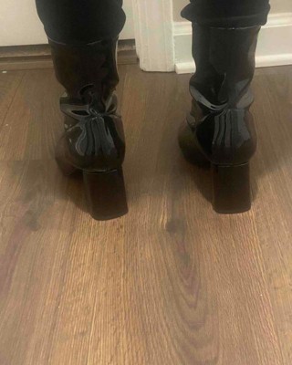 Add 70s glamor to any look from jeans to miniskirts with the Reice bootie by Journee. This retro bootie is the definition of effortlessly chic with a square-toe and patent vegan leather uppers. A block heel paired with a 4 mm footbed makes them super comfy but flattering. At Journee our booties will give you that comfortable yet stylish look perfect for when youre in the office all the way to a fun night out with the girls.