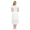 A: The dress has flutter sleeves, adding a feminine touch to its design.