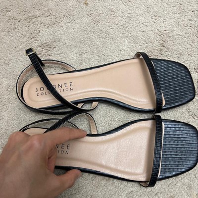 Product Name: Journee Collection Women's Crishell Textured Material Sling Back Stacked Heel Sandals