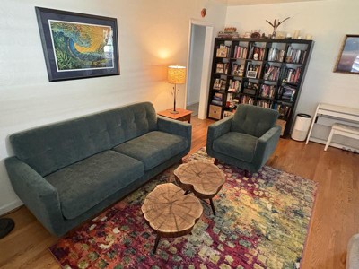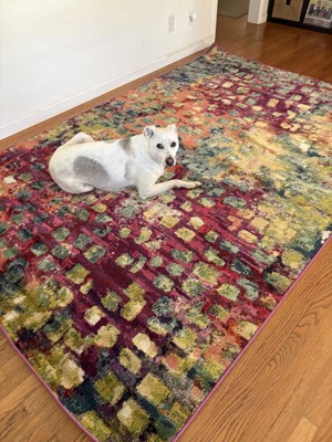 Colorful, but would be better if the different colors were actually different colors instead of using mixed yarns to give an impressionistic effect. Also the rug is having a hard time laying flat, but it does seem to be improving with time.