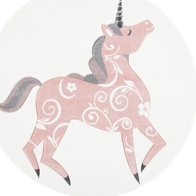 Embrace the charm and childlike wonder with our Pink/Ivory Unicorn Round rug, where quality meets playful elegance, creating a cozy and imaginative space for your kids to grow and dream.