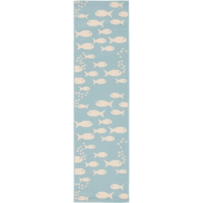 Courtyard CY6201 UV & Stain Resistant Non-Shedding Power Loomed Indoor/Outdoor Runner Rug - Beige/Blue - 2'3"x14' - Safavieh
