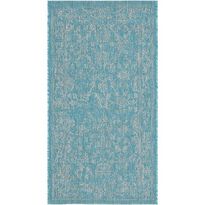 Courtyard CY8061 Power Loomed Indoor and Outdoor Accent Rug - Aqua/Grey - 2'x3'7" - Safavieh