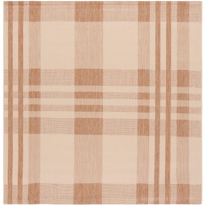Courtyard CY8751 UV & Stain Resistant Non-Shedding Power Loomed Indoor/Outdoor Accent Rug - Light Beige/Terracotta - 4'x4' - Safavieh