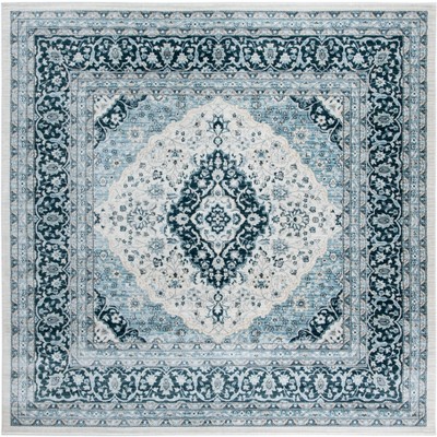 Indulge in the elegance and timeless beauty of our 4' x 4' Square Area Rug, impeccably designed in a serene palette of blue and creme. This finely crafted rug boasts a transitional style that seamlessly blends classic charm with modern sensibilities. Expertly power-loomed in Turkey, this piece showcases a harmonious blend of florals and ornate patterns, offering a sophisticated and plush underfoot experience with a height of 1/4".