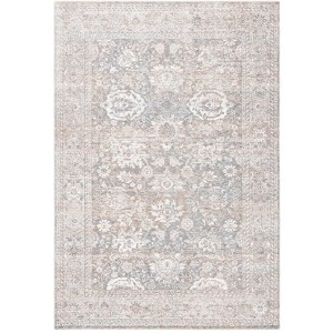 The transitional style of the rug, accentuated with a harmonious grey and beige color palette, seamlessly integrates with various home decor themes. The intricate pattern, reflecting timeless motifs, adds a touch of sophistication and class wherever it's placed. Moreover, the slip-resistant quality ensures safety and convenience in high-traffic areas.