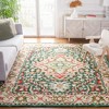 Imbued with the free-spirited charm of the Bohemian style, the rug features a compelling interplay of forest greens and rich reds, creating a visual feast for the eyes and a striking statement in your home decor. The intricate pattern displayed in the image, a symphony of traditional motifs, florals, and geometric shapes, is meticulously replicated, infusing your living space with an air of timeless elegance.