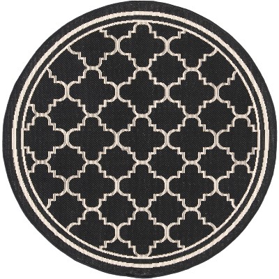 Courtyard CY6902 Power Loomed Indoor and Outdoor Area Rug - Black/Beige - 4' Round - Safavieh