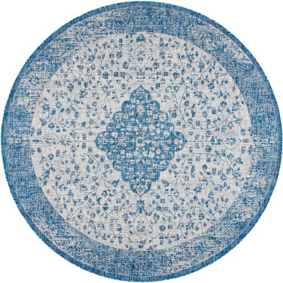 Courtyard CY8720 UV & Stain Resistant Non-Shedding Power Loomed Indoor/Outdoor Area Rug - Black/Grey - 6'7" Round - Safavieh
