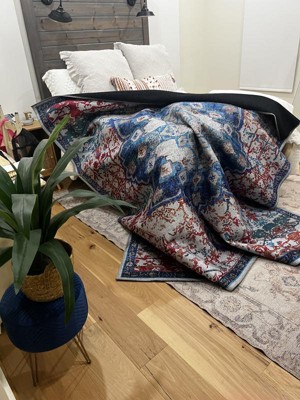 Timeless looks on washable rugs. With bright contemporary colors and medallion designs, the Renaissance Collection brings home worldly design in a low-maintenance package. Durable modern materials and a cotton backing mean cleaning is as easy as throwing it in the washing machine! The printed designs are available in bold colors ranging from dark blacks and blues to bright greens and pinks blend together like tie-dye, giving you lots of options. A subtle abrash gives the rugs a casual, distressed look perfect for bohemian and shabby-chic decor.