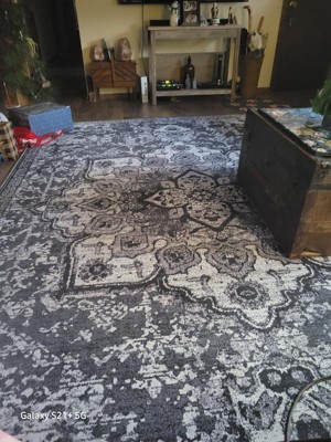 I love this rug so much but I was very disappointed that he color was so different when I received it. Beware that this rug is navy blue and gray. It i not black or charcoal gray as the picture appears. I am glad I bought it, but I had to find a different room to us it in!