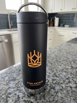 Keeps my coffee hot for hours. Easy to hold, not too “fat”, flip up handle is a nice feature. & love the King Arthur logo.