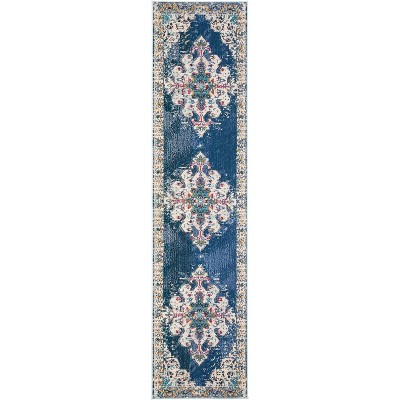 Madison MAD452 Non-Shedding Power Loomed Indoor Runner Rug - Navy/Grey - 2'2"x12' - Safavieh